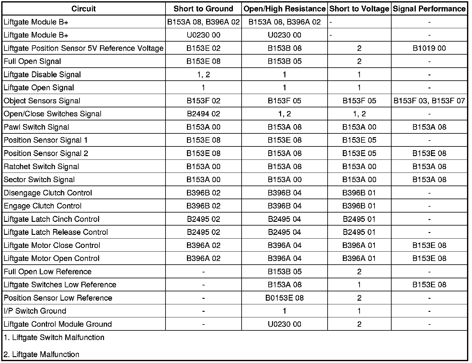 - Liftgate Motor Control Circuit Short to Battery