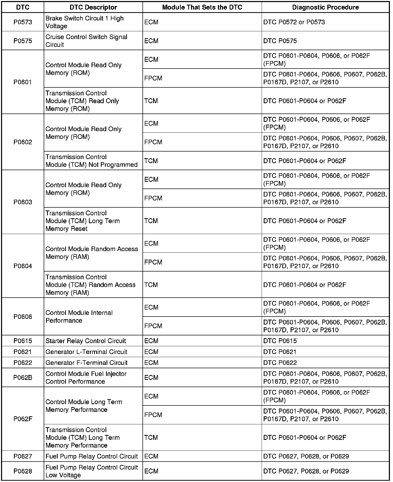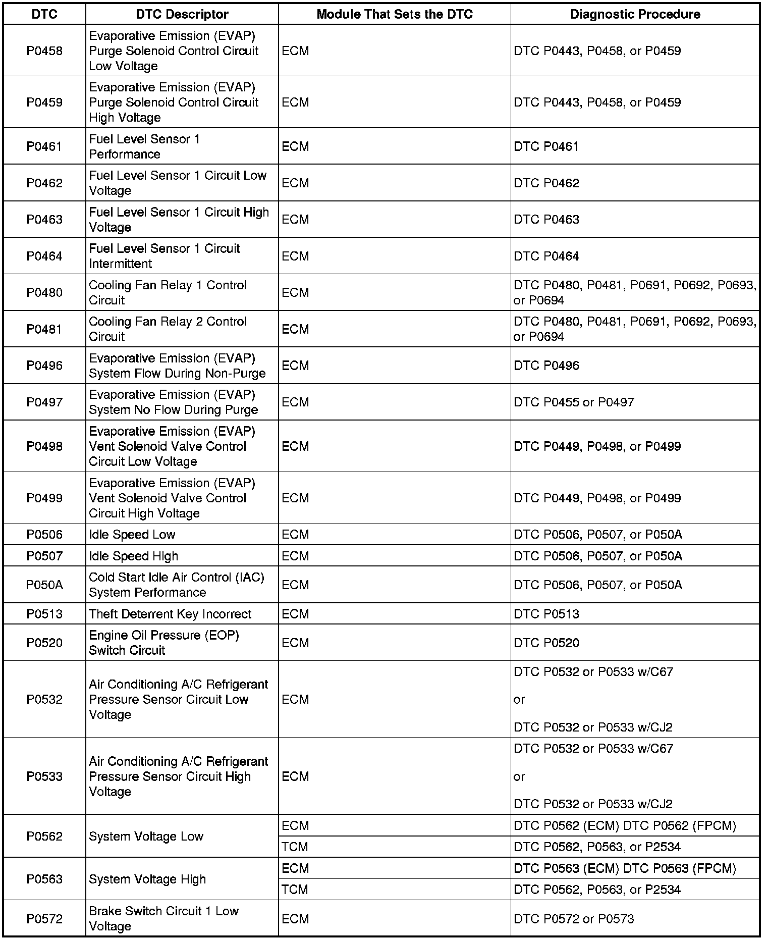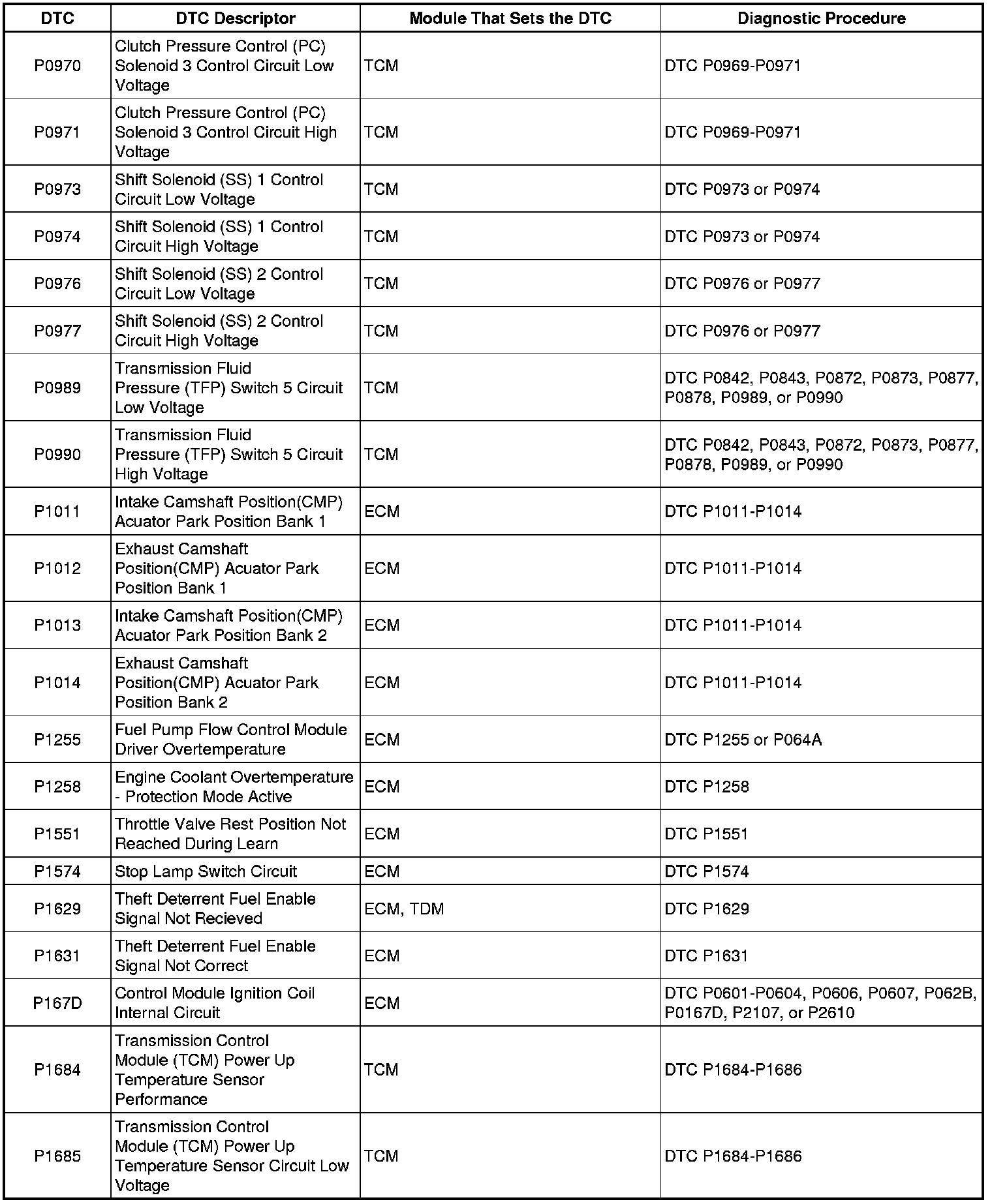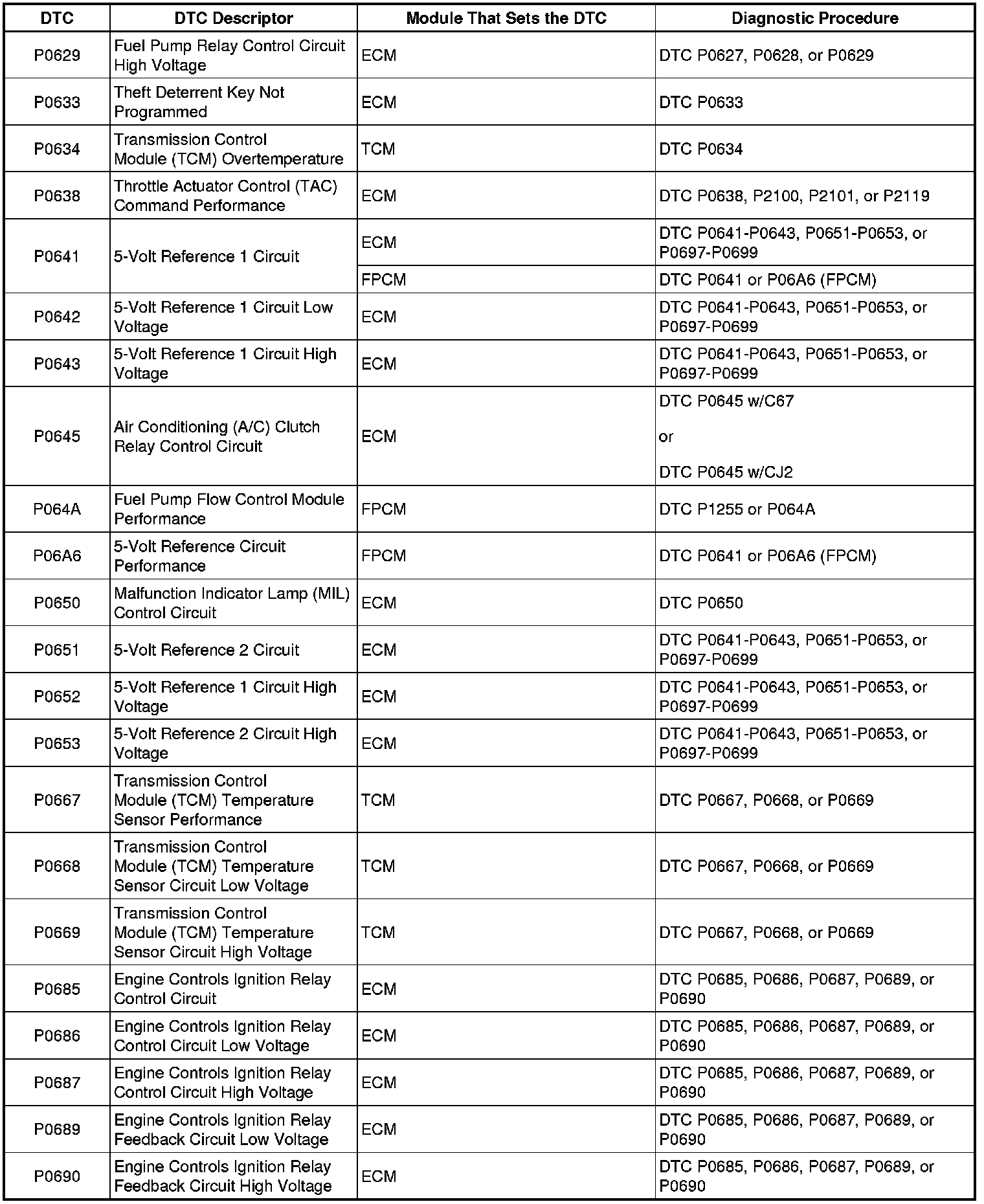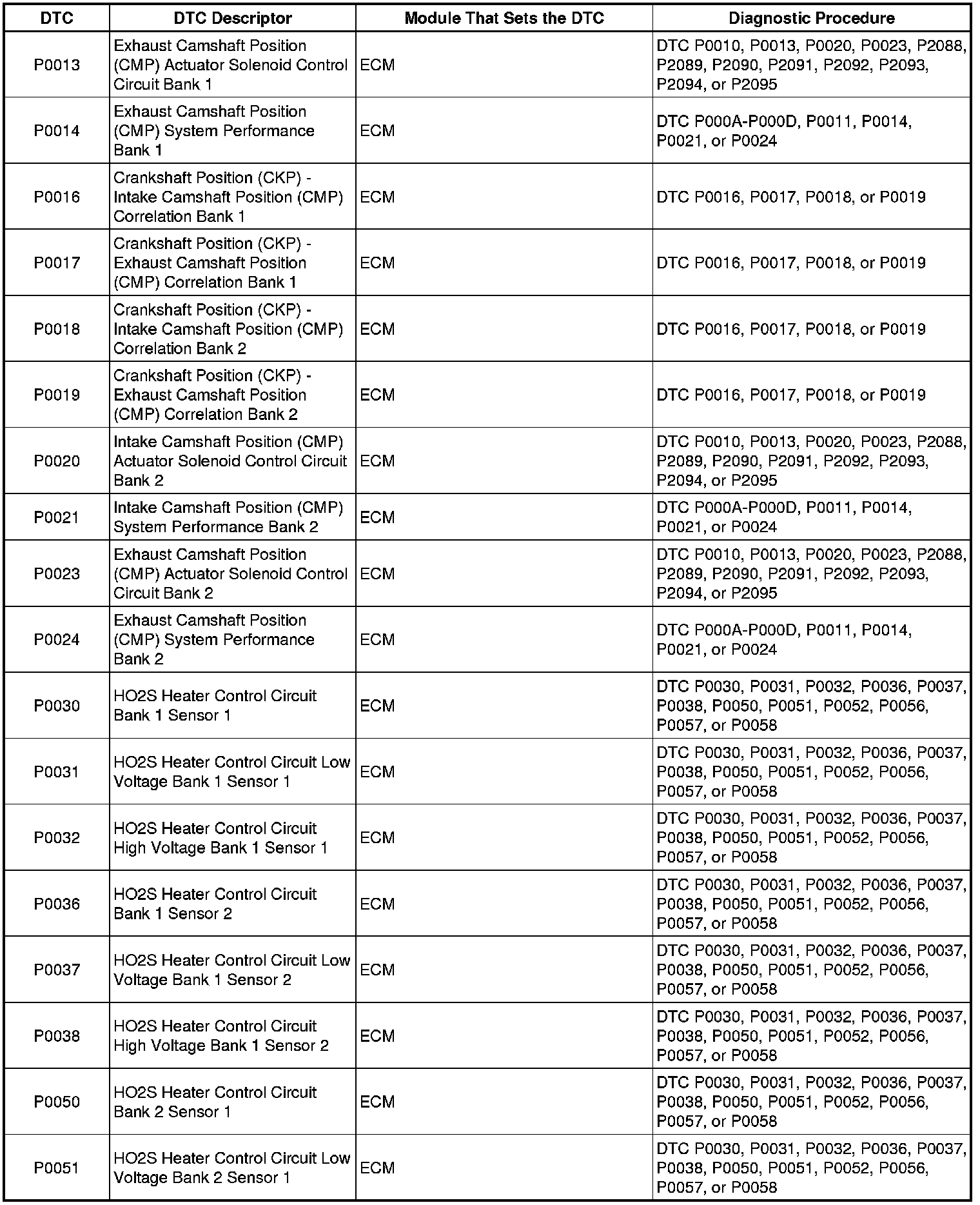 Diagnostic Trouble Code (DTC) List - VehicleThis master DTC list includes all applicable DTCs in alphanumeric order with descriptors.
