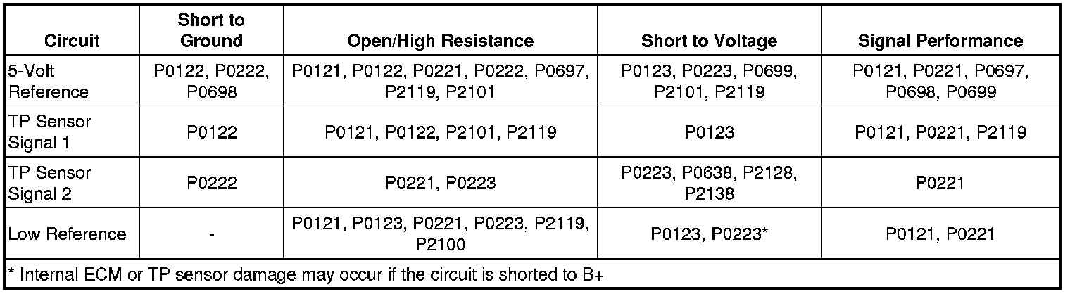 * DTCs P0122, P0123, P0222, and P0223 are Type A DTCs.