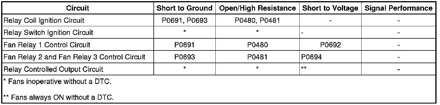 DTC P0480, P0481, P0691, P0692, P0693, or P0694
