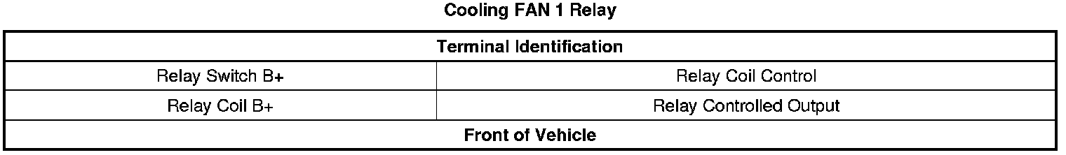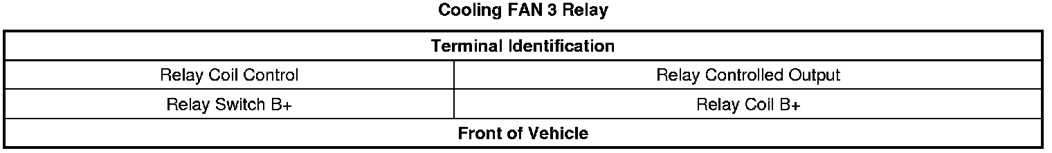 * The following tables illustrate the FAN 1 relay, FAN 2 relay and the FAN 3 relay terminal locations in the underhood fuse block: