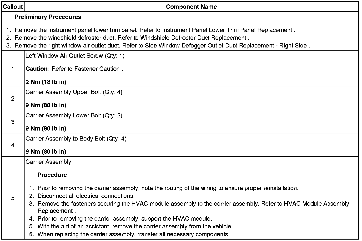 Instrument Panel Carrier Replacement
