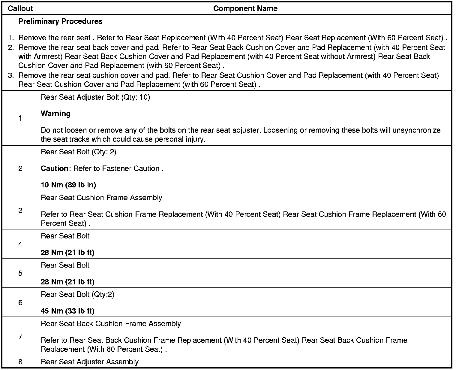 Rear Seat Adjuster Replacement (With 60 Percent Seat)