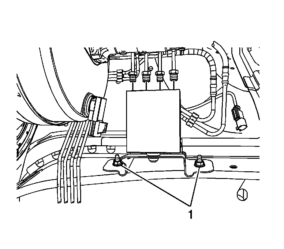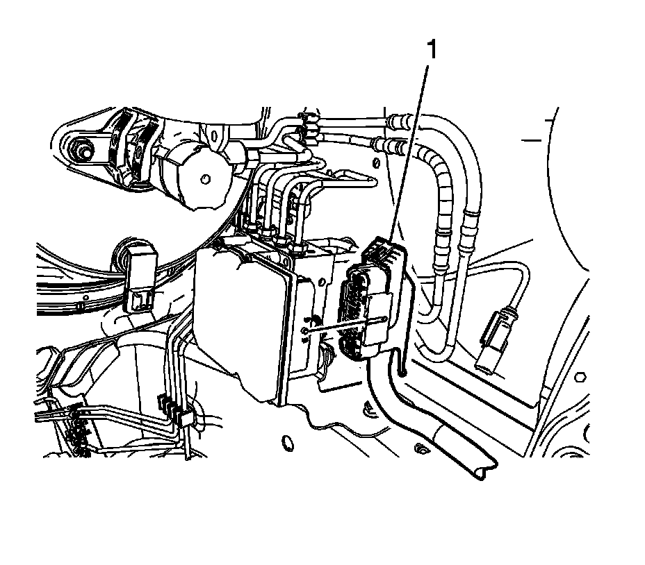 3. Disconnect the electronic brake control module (EBCM) electrical connector (1) by lifting the locking tabs.