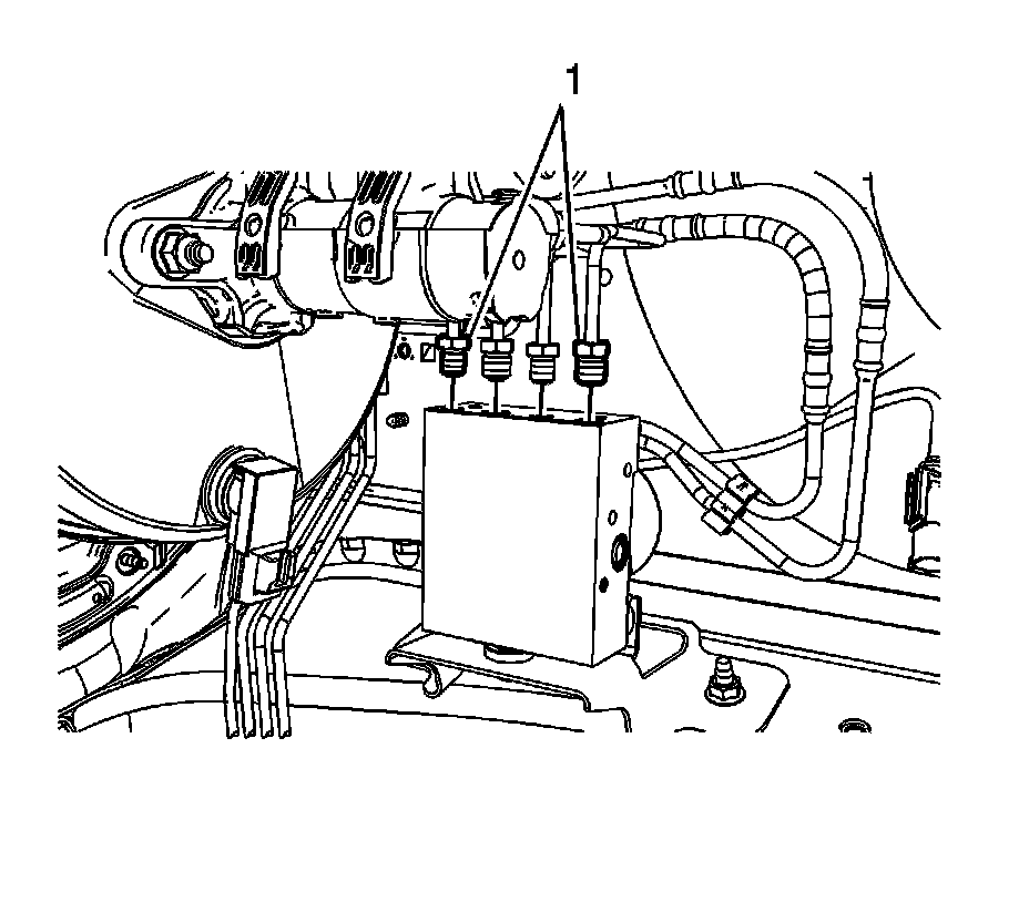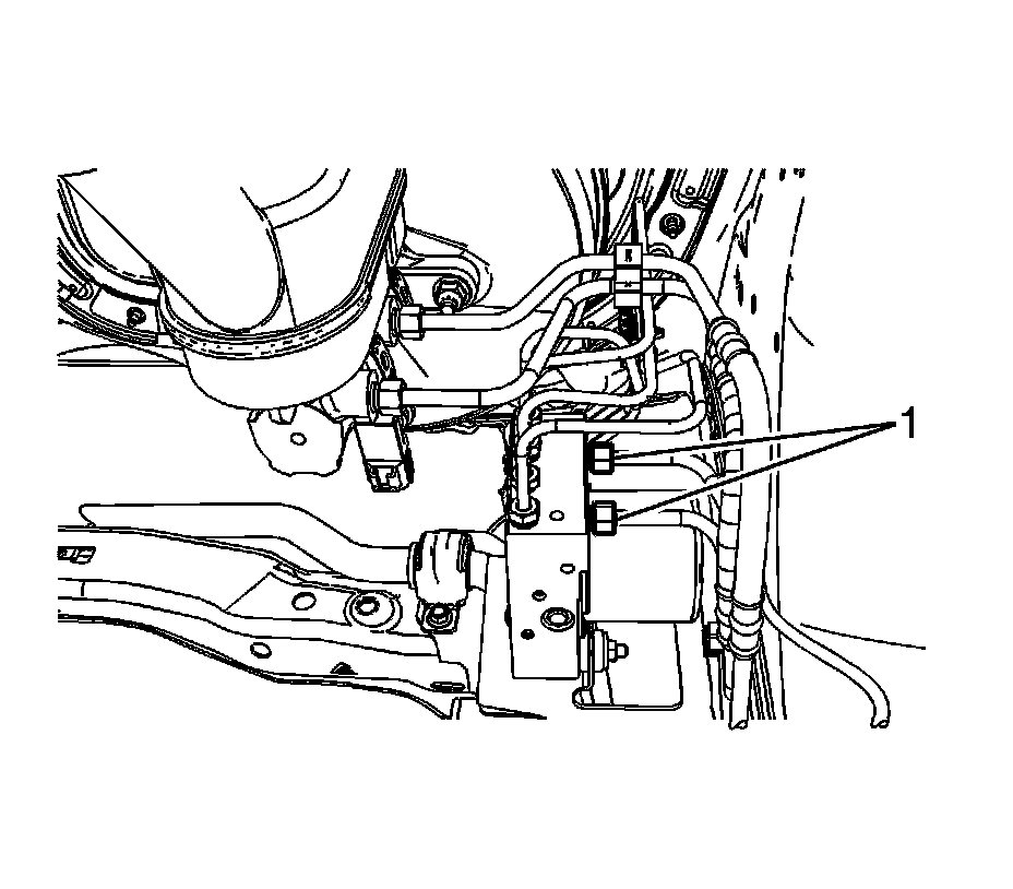 5. Disconnect the BPMV outlet port front brake pipe fittings (1).