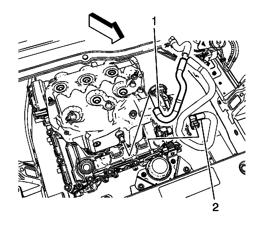 8. Release the quick connect (2) from the power brake booster auxiliary pump.
