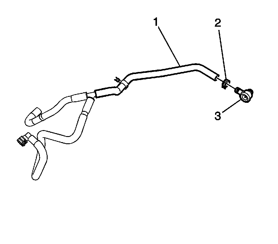 1. Install the vacuum brake booster hose (1) and clamp (2) to the check valve (3).