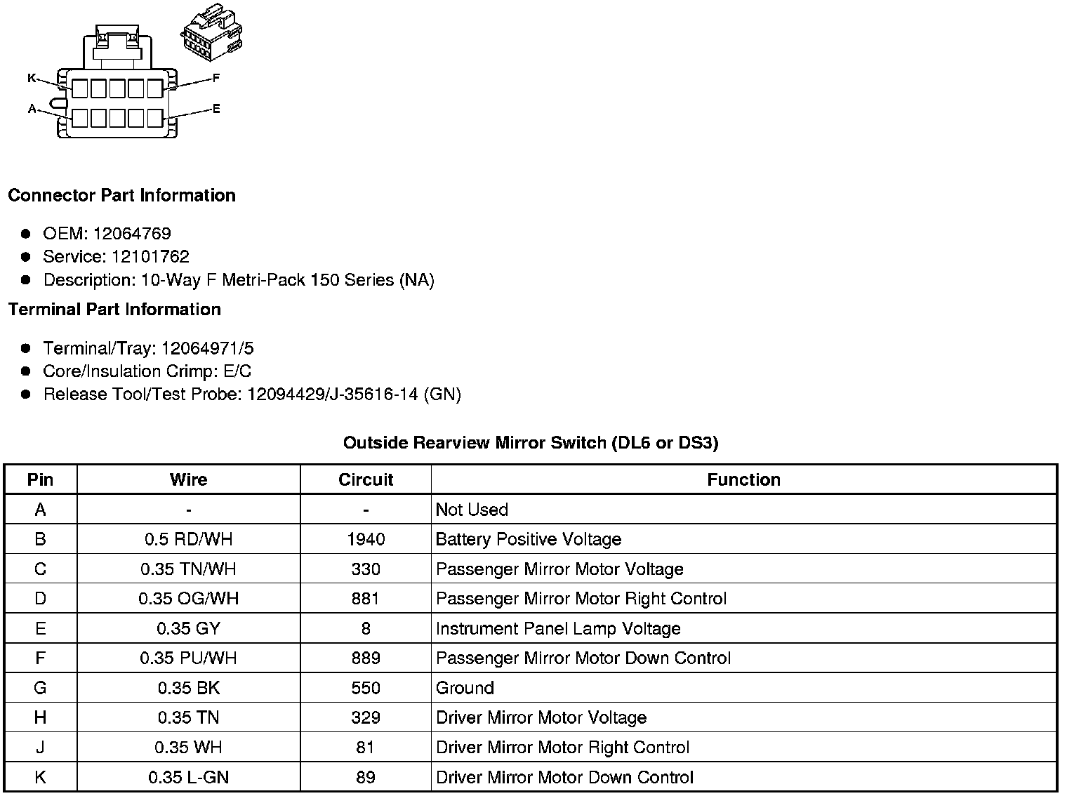 Outside Rearview Mirror Switch (DL6 or DS3)