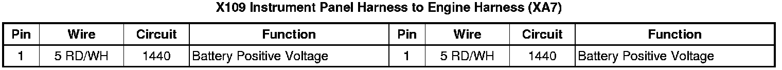 X109 Instrument Panel Harness to Engine Harness (XA7)