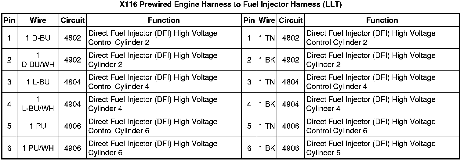 X116 Prewired Engine Harness to Fuel Injector Harness (LLT)