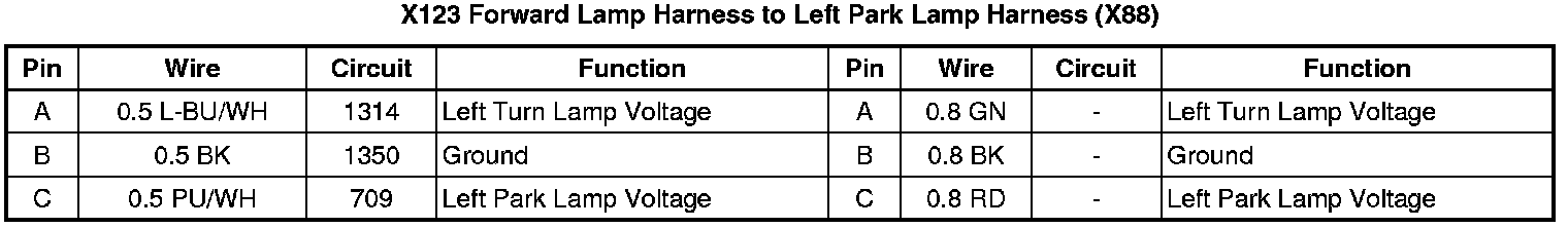 X123 Forward Lamp Harness to Left Park Lamp Harness (X88)