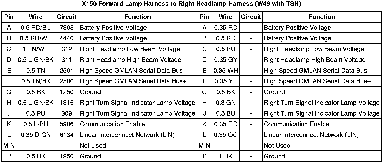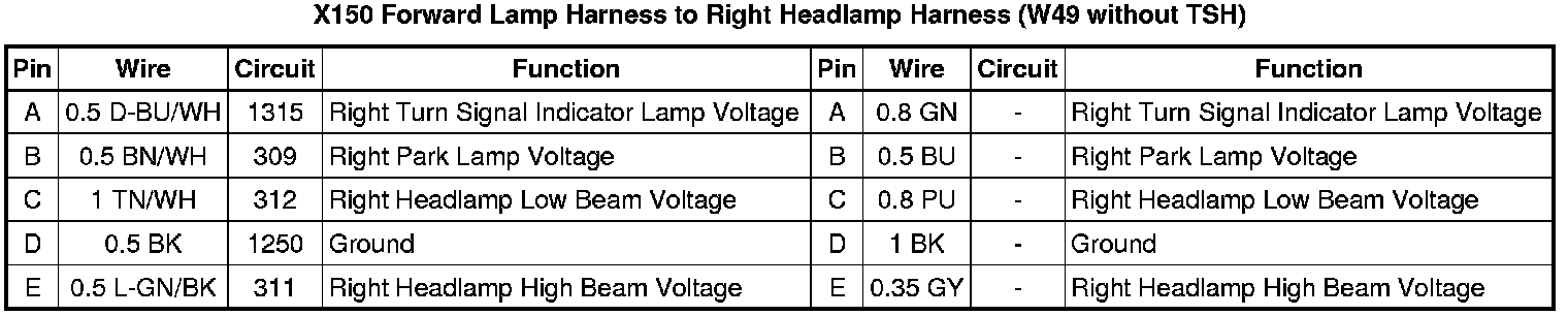 X150 Forward Lamp Harness to Right Headlamp Harness (W49 without TSH)