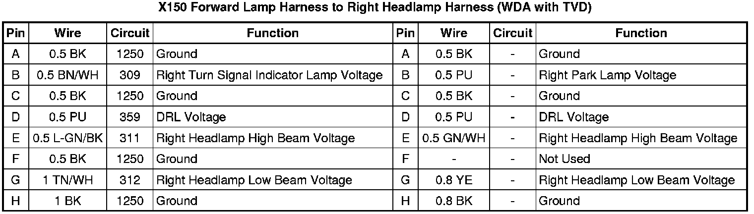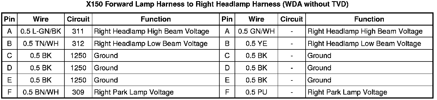 X150 Forward Lamp Harness to Right Headlamp Harness (WDA without TVD)