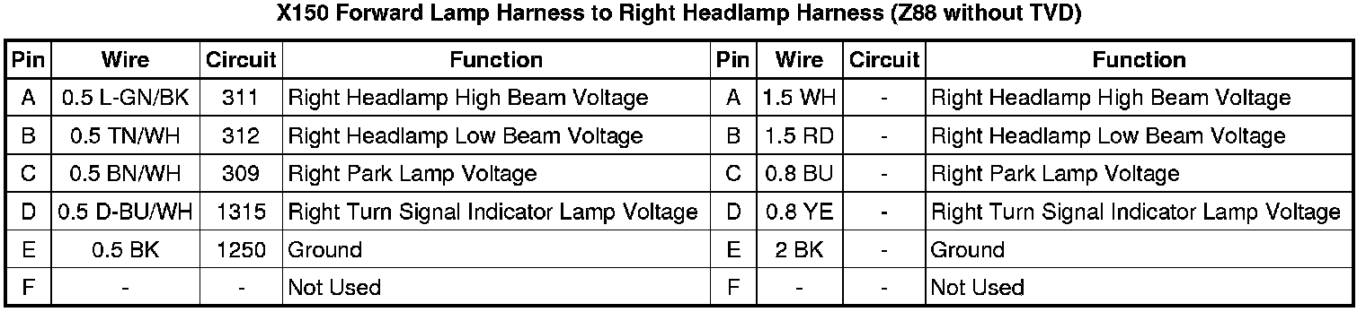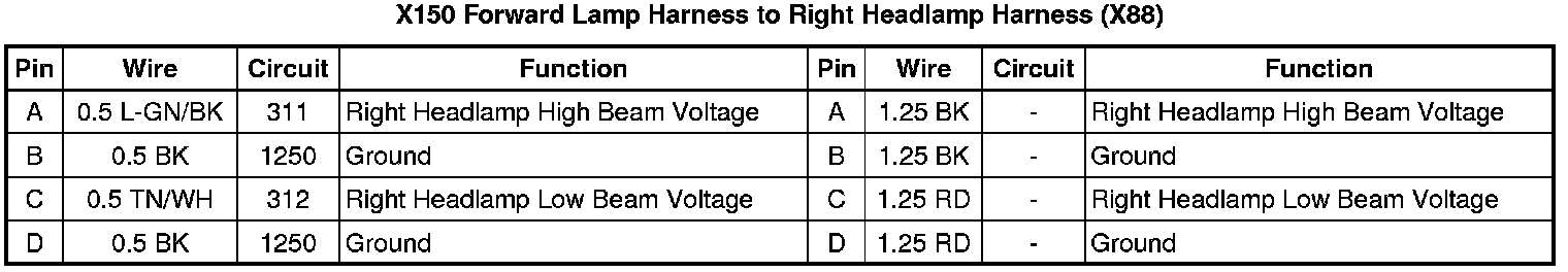 X150 Forward Lamp Harness to Right Headlamp Harness (X88)