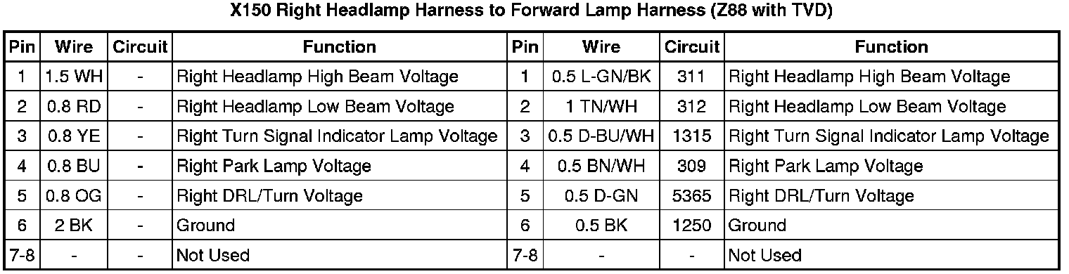 X150 Forward Lamp Harness to Right Headlamp Harness (Z88 without TVD)