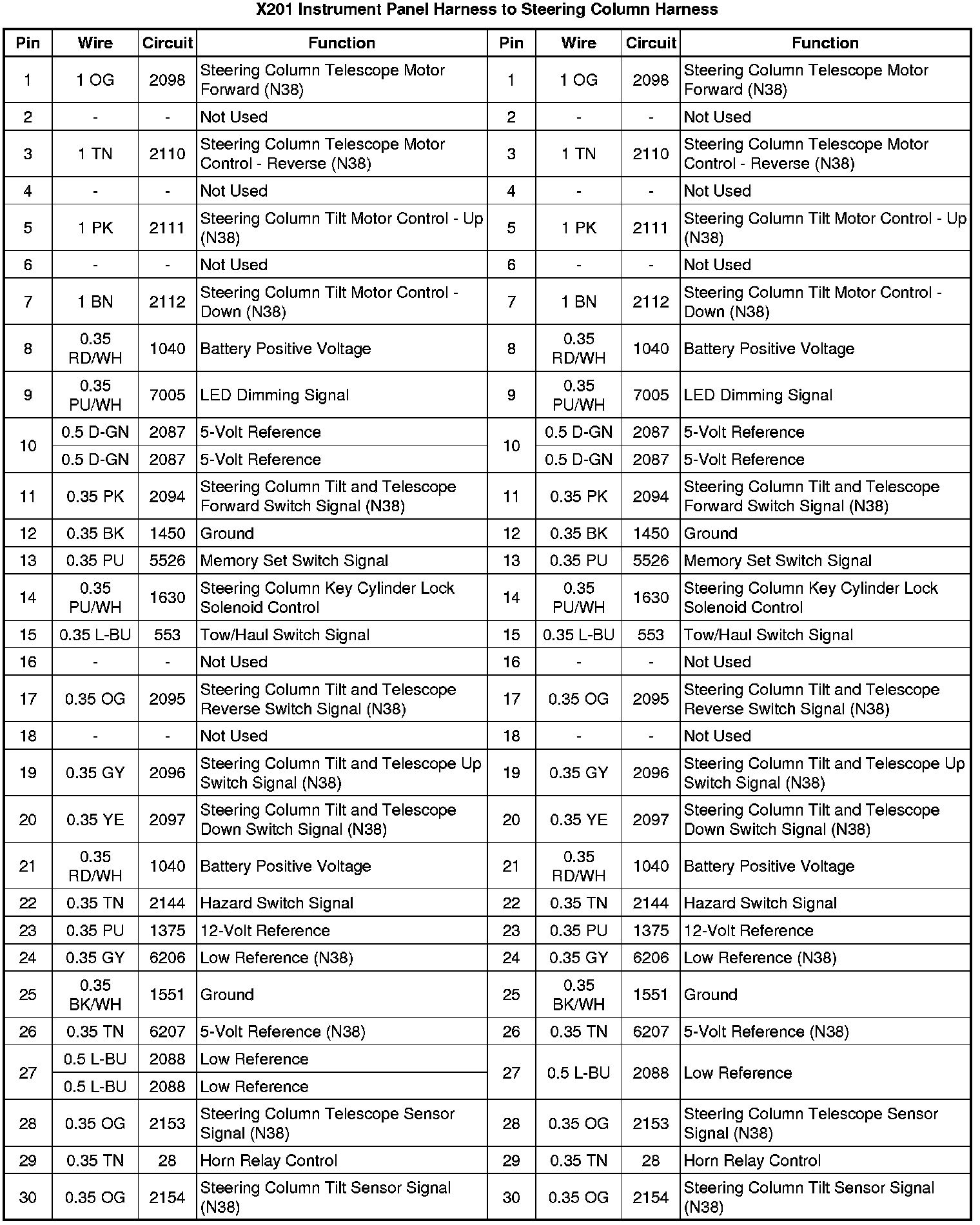X201 Instrument Panel Harness to Steering Column Harness