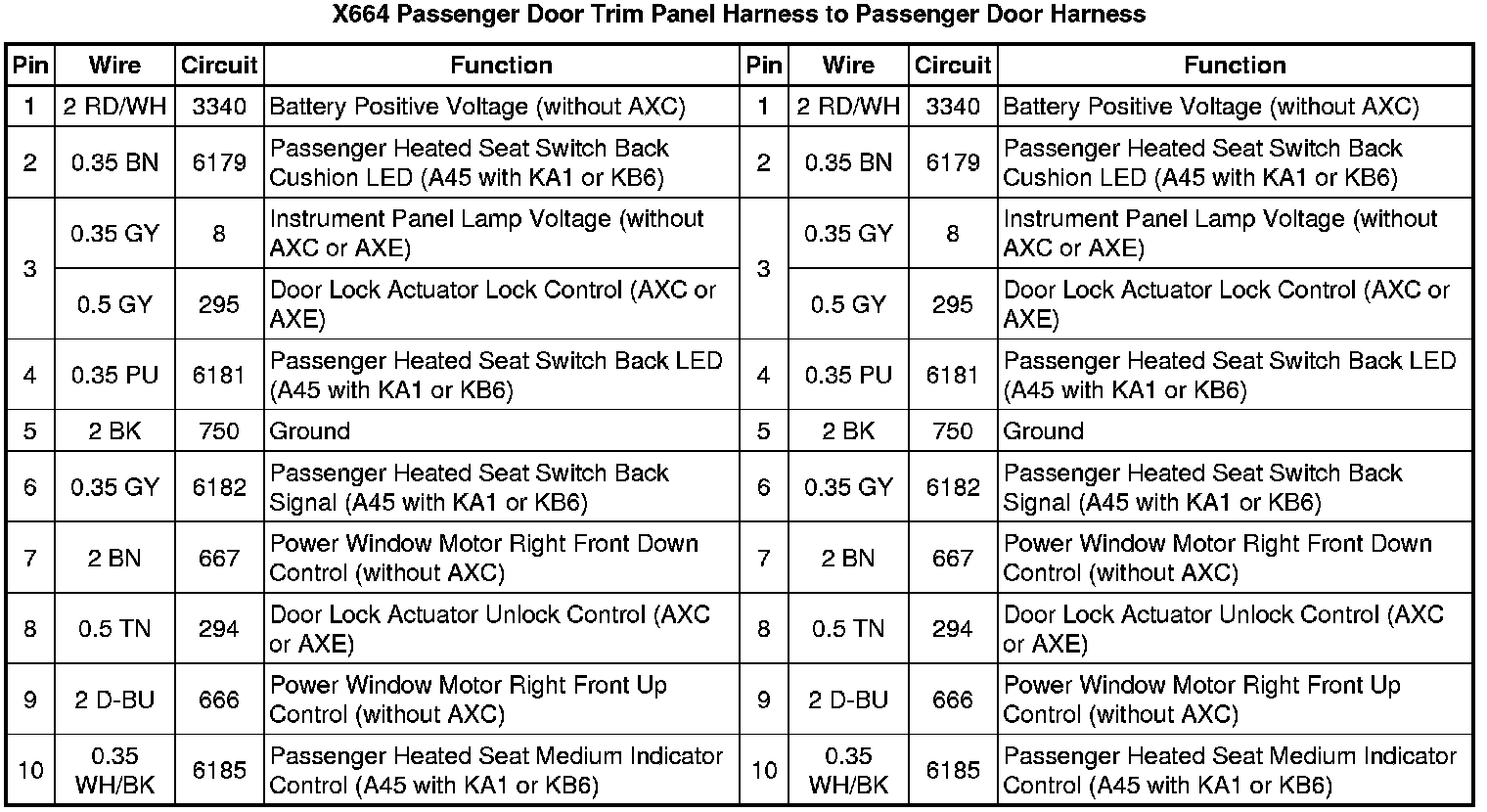 X664 Passenger Door Trim Panel Harness to Passenger Door Harness
