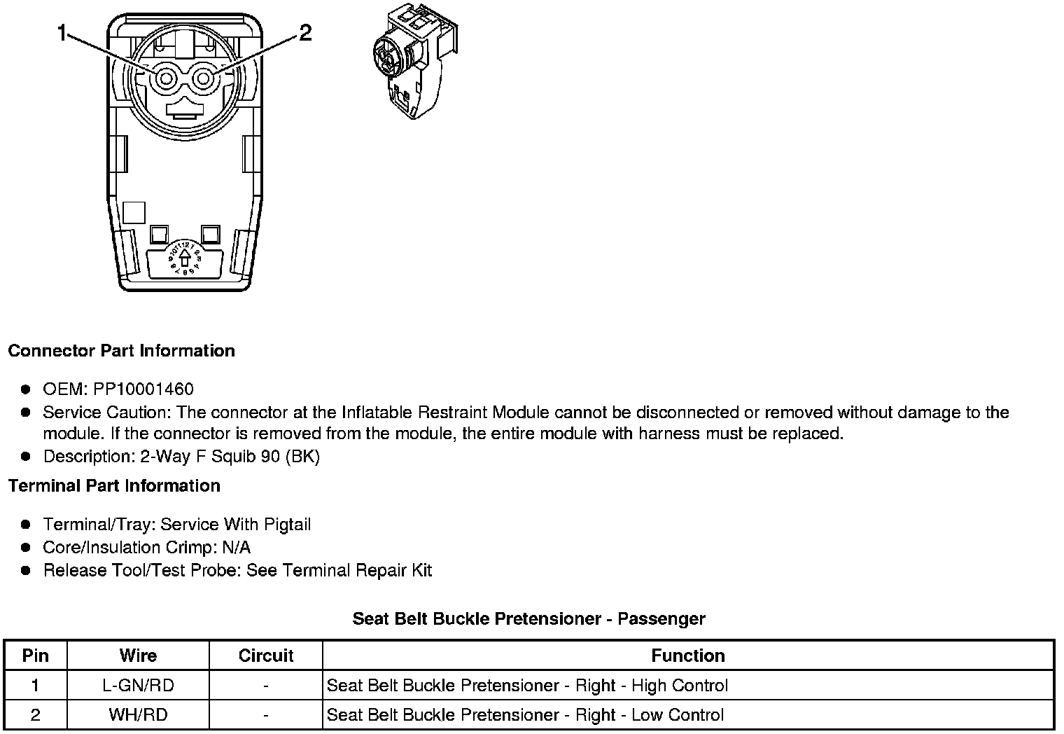 Seat Belt Buckle Pretensioner - Passenger