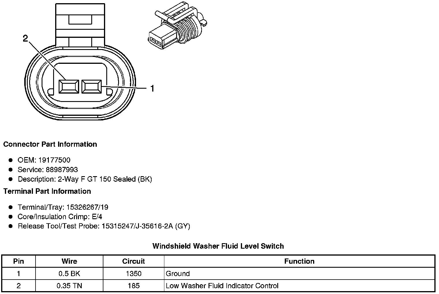Windshield Washer Fluid Level Switch