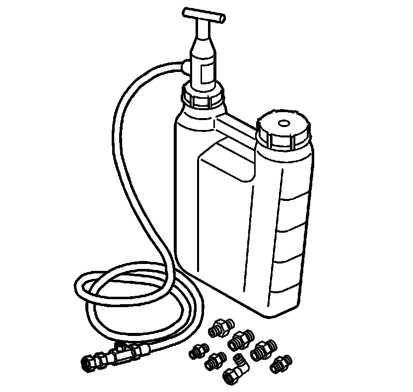 6. Pump the handle of the J 45299 - preluber in order to flow a minimum of 1-1.9 liters (1-2 quarts) of fresh clean engine oil. Observe the flow of engine oil through the flexible hose and into the engine assembly.