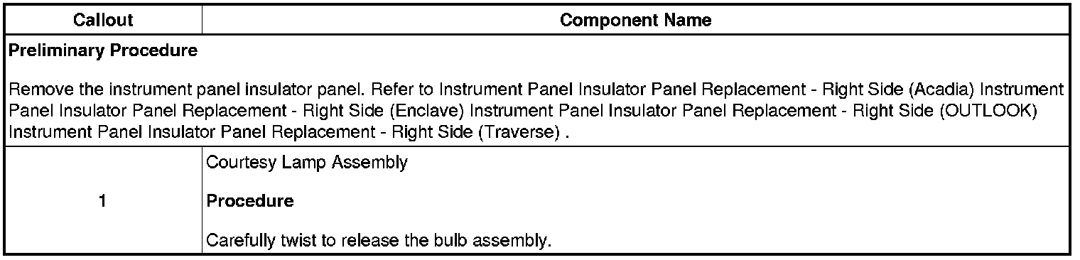 Instrument Panel Courtesy Lamp Bulb Replacement - Right Side
