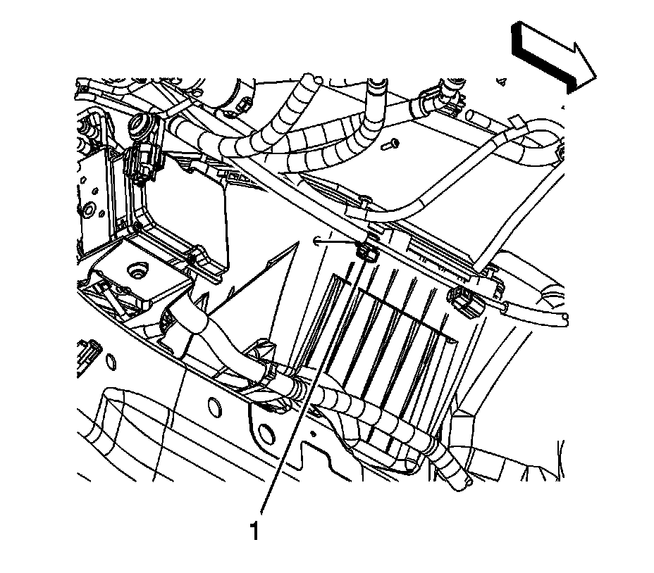 5. Install the hood release cable clip (1) to the air cleaner lower housing.