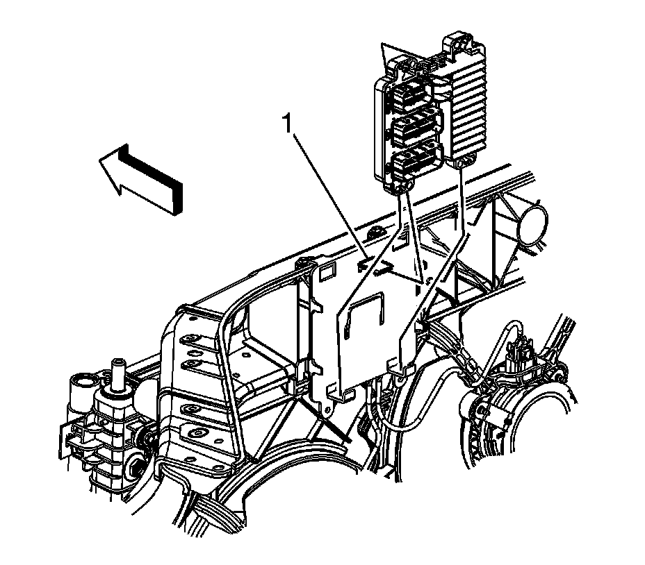 6. Gently lift up the retaining tab (1) and remove the ECM from the bracket, reposition out of the way.