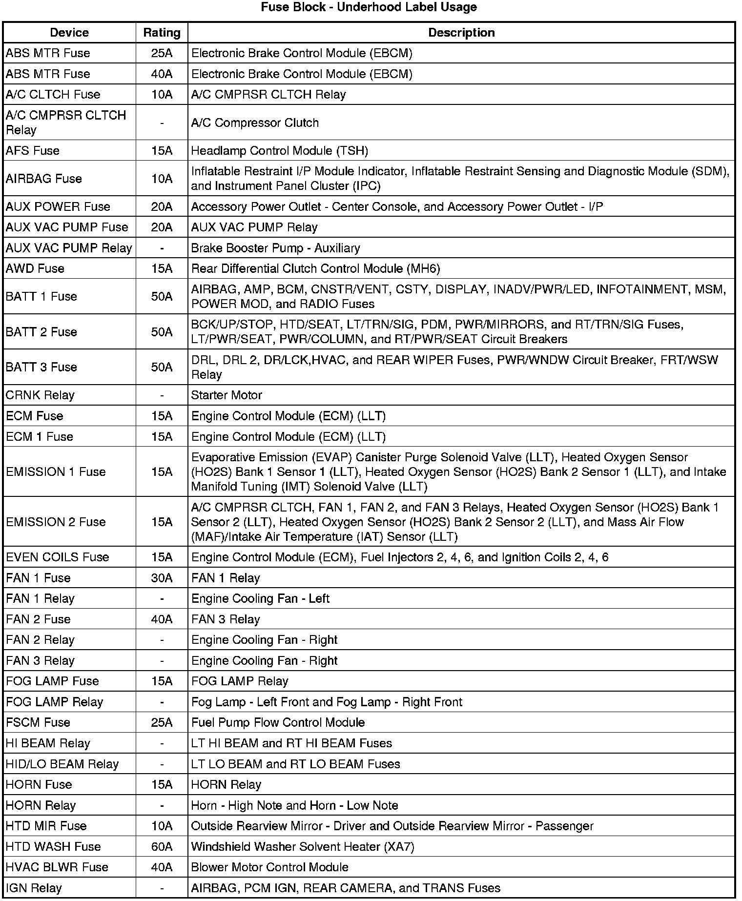 Fuse Block - Underhood Label