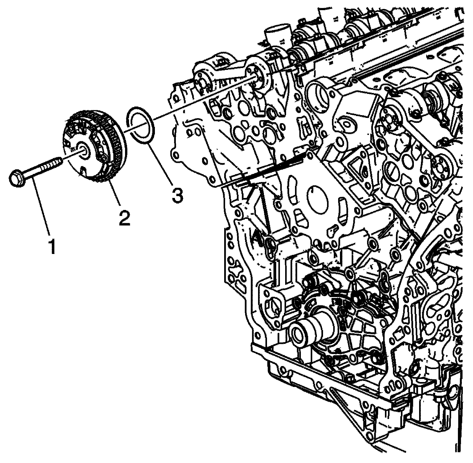 5. Locate the intake camshaft position actuator to the camshaft and loosely install the bolt.
