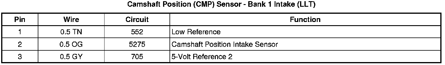 Camshaft Position (CMP) Sensor - Bank 1 Intake (LLT)