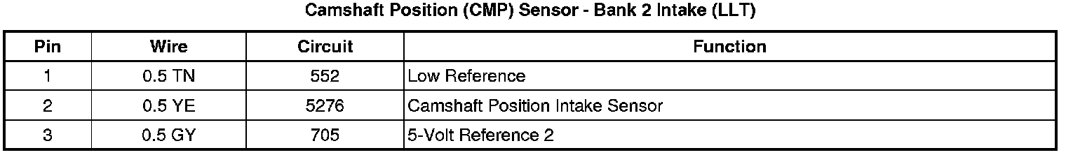 Camshaft Position (CMP) Sensor - Bank 2 Intake (LLT)