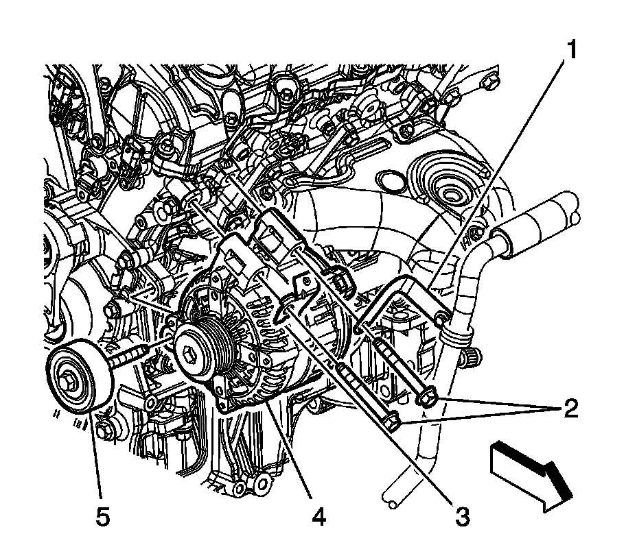 17. Remove the generator (4) and idler pulley (5) together from the vehicle.