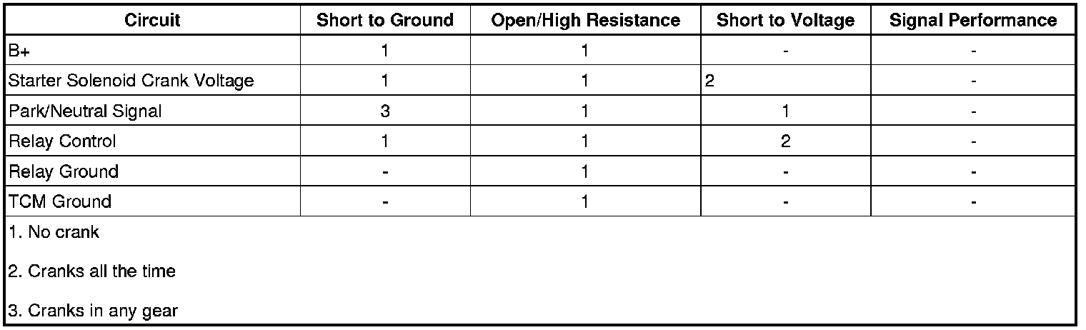 When the ignition switch is placed in the START position, a discrete signal is supplied to the body control module (BCM) notifying it that the ignition is in the START position. The BCM then sends a message to the engine control module (ECM) that crank has been requested. The ECM then verifies that the transmission is in park or neutral. If it is, the ECM then supplies 12 V to the control circuit of the CRNK relay. When this occurs, battery voltage is supplied through the CRNK relay the starter solenoid.