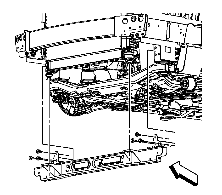 1. Remove the front bumper fascia. Refer to Front Bumper Fascia Replacement (Acadia) (Front Bumper Fascia Replacement)Front Bumper Fascia Replacement (Enclave) (Front Bumper Fascia Replacement)Front Bumper Fascia Replacement (OUTLOOK) (Front Bumper Fascia Replacement)Front Bumper Fascia Replacement (Traverse) (Front Bumper Fascia Replacement).
