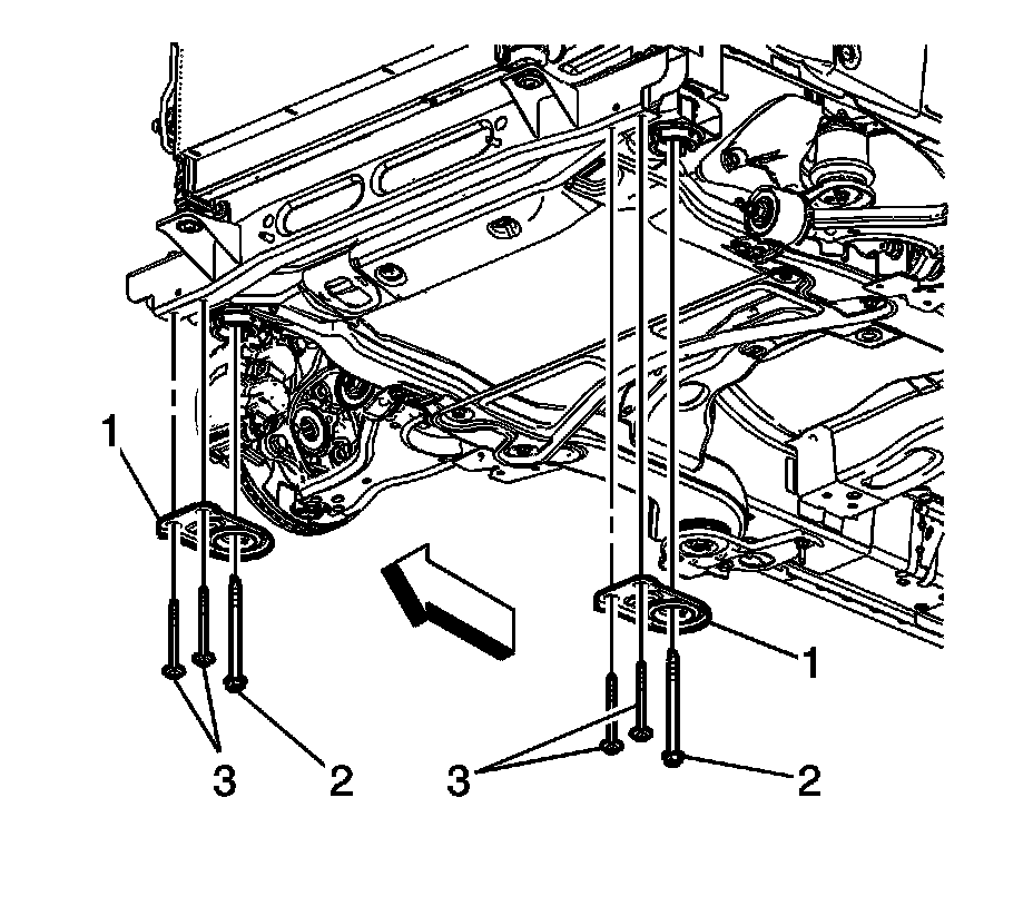 4.Remove the front crossmember brace bolts (3).