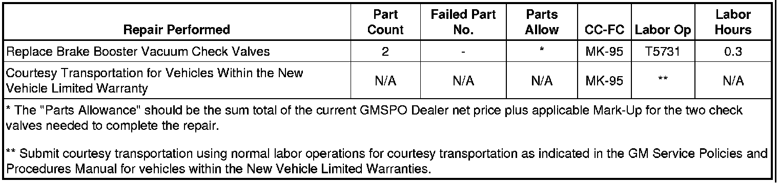 For vehicles repaired under the terms of this customer advisory, submit a claim with the information indicated below: