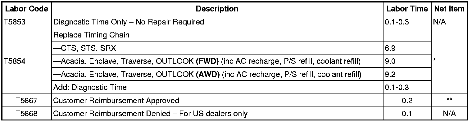 - If the timing chain does NOT require replacement, no further action is required. Inform the customer that any additional diagnosis and repairs are not covered under this special coverage.