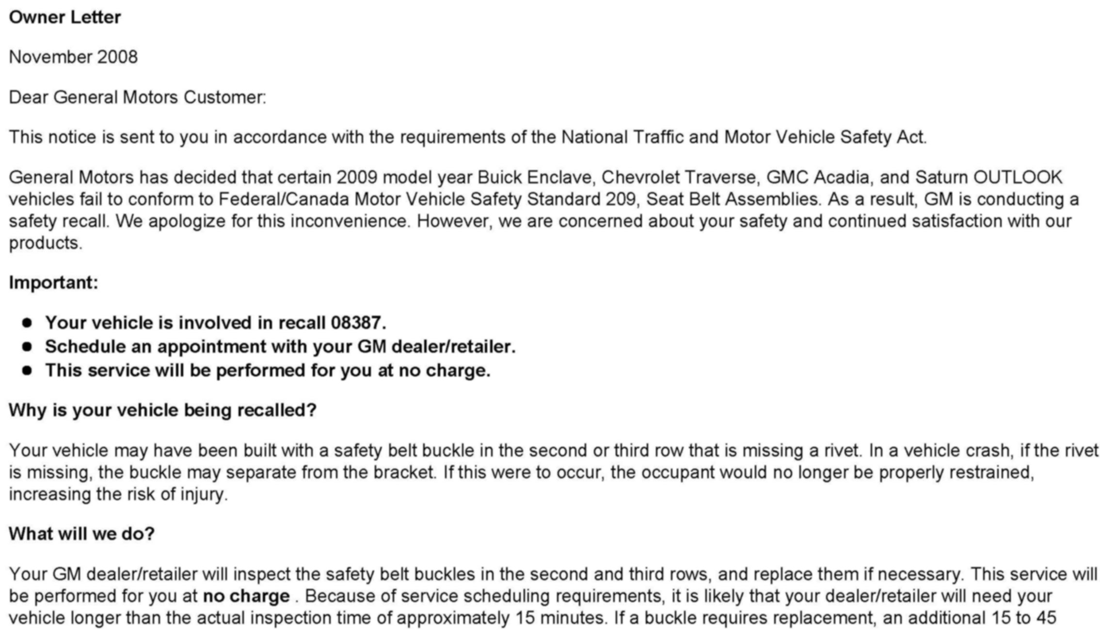 Recall - 2nd/3rd Row Seat Belt Buckle Defect