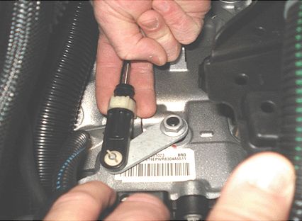1. Open the hood and locate the transmission shift cable.