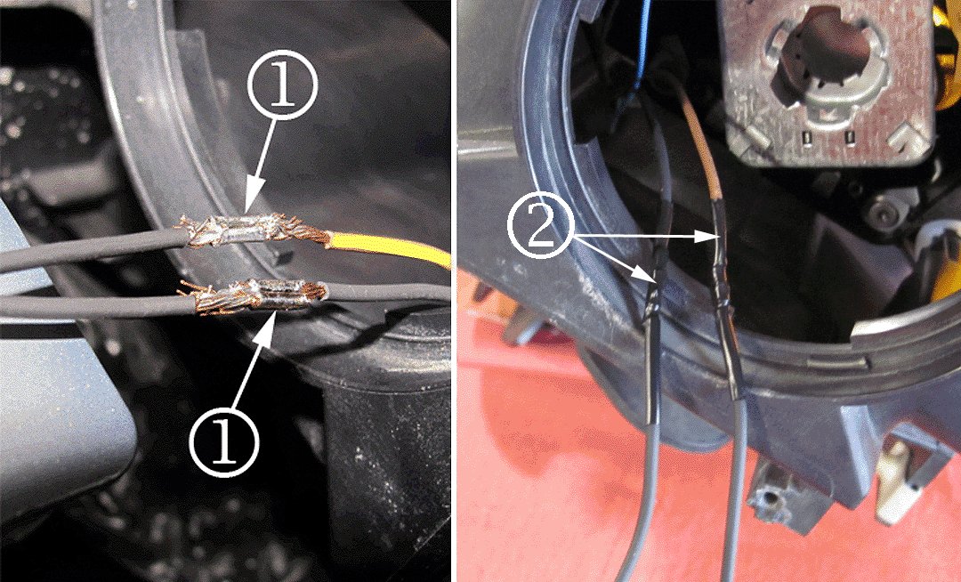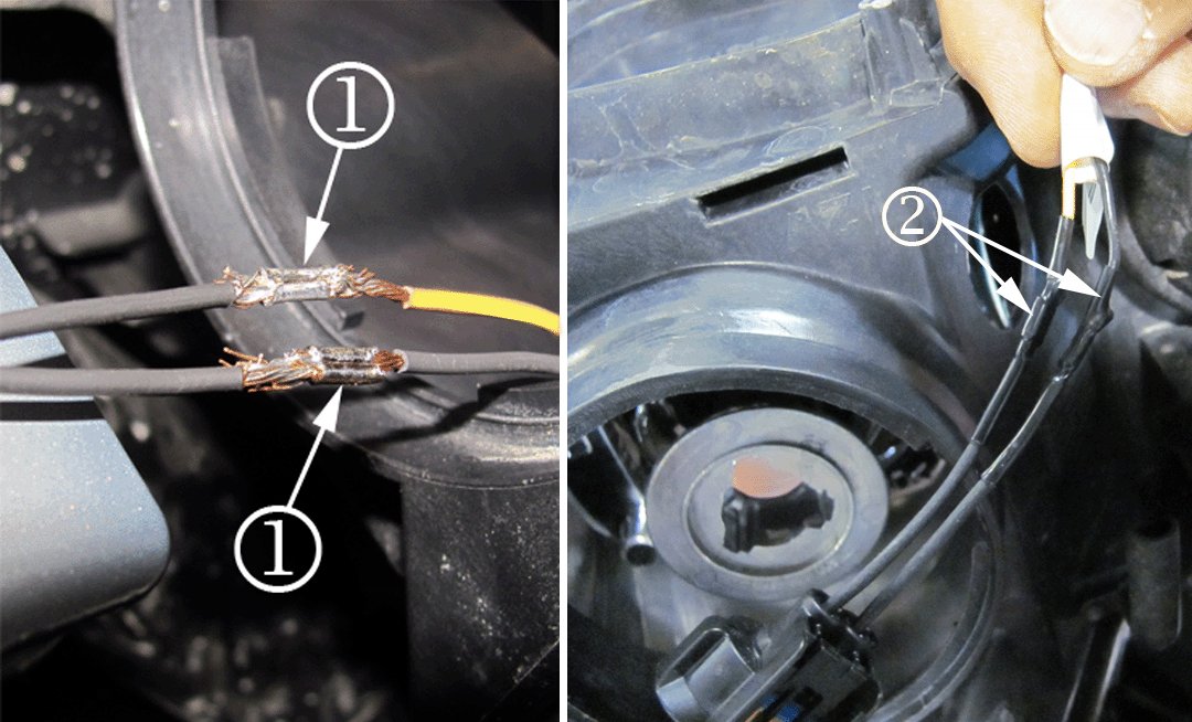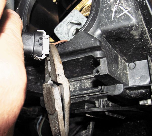 1. Cut the wires of the headlamp harness at the base of the connector.