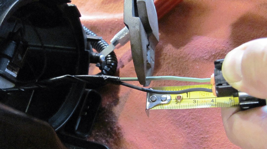 7. Cut the two wires attached to the connector to 152 mm (6 in) in length (2).