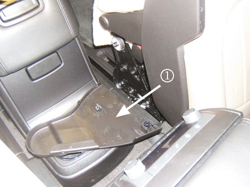 3. Remove the rear seat recliner inner trim cover (1). Refer to Rear Seat Recliner Outer Finish Cover Replacement - Inboard in SI.