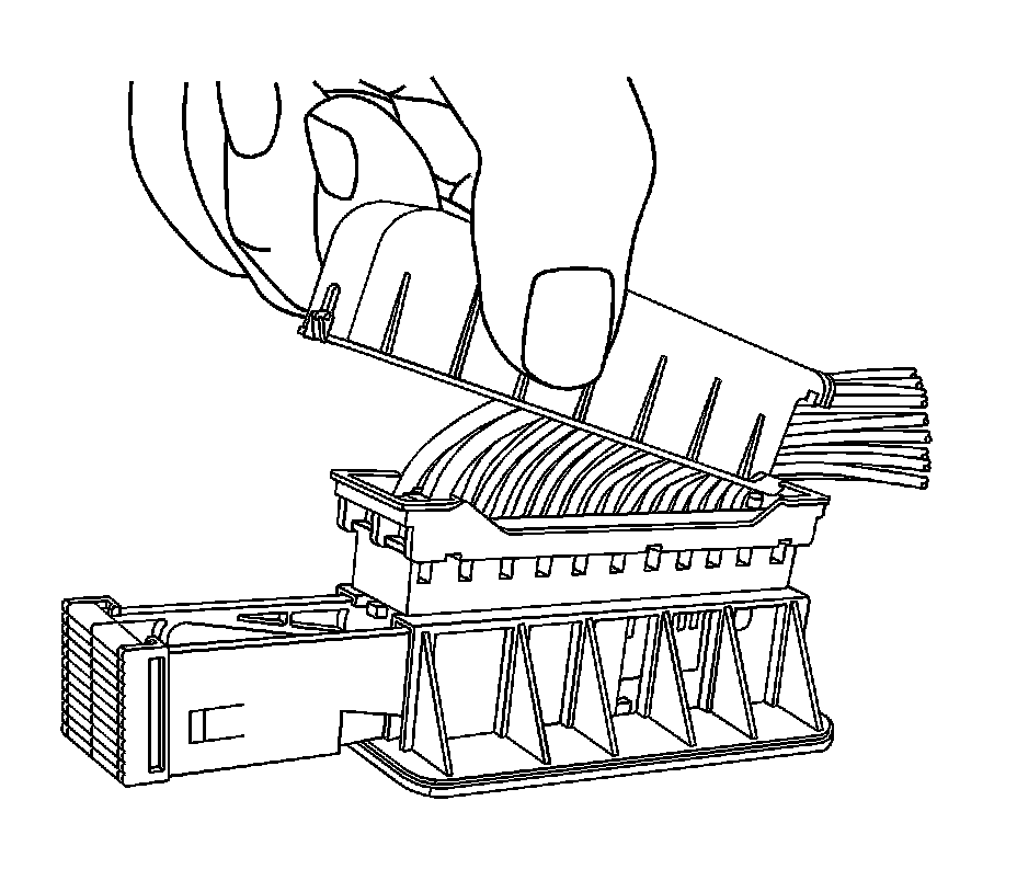 5. Using terminal release tool J-38125-11A or equivalent, release the connector wire dress cover locking tab.