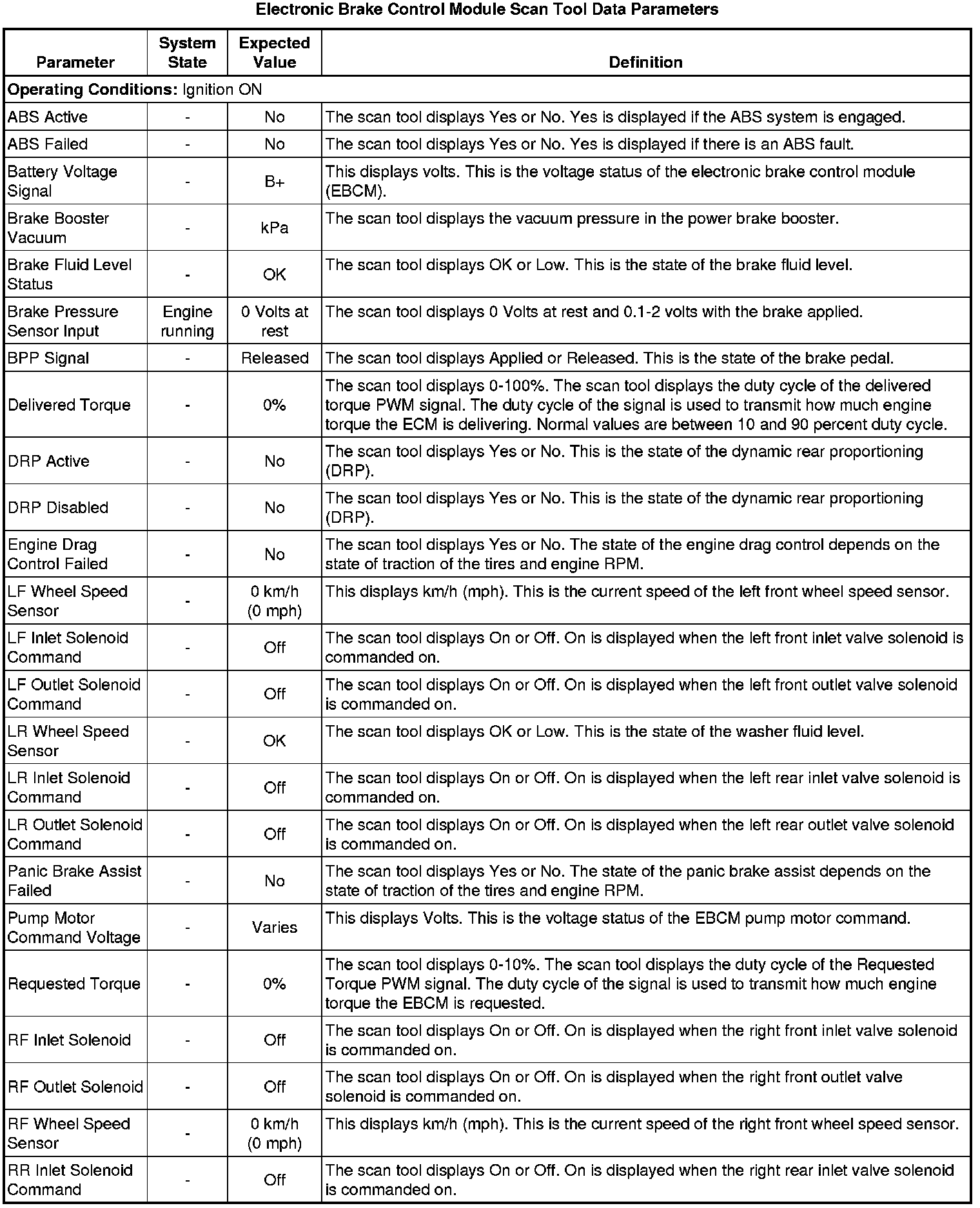 Electronic Brake Control Module Scan Tool Information