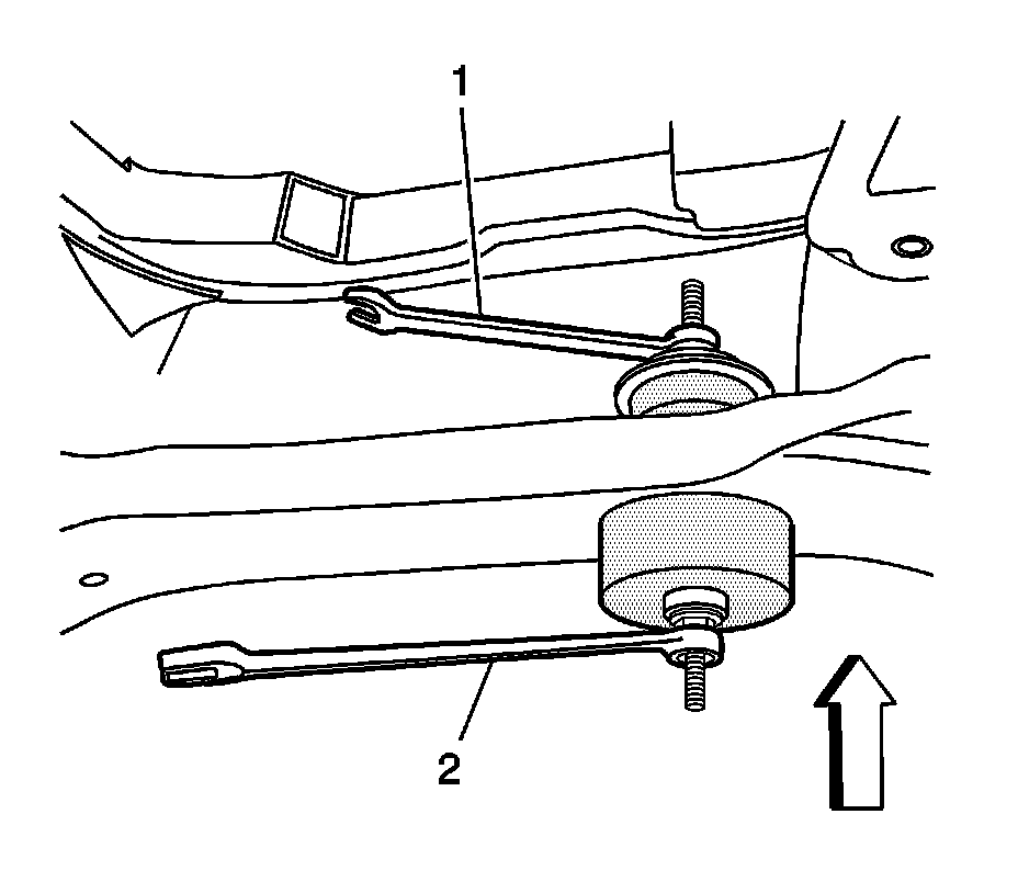9. While holding the front wrench (1) rotate the rear wrench (2) to remove the bushing.