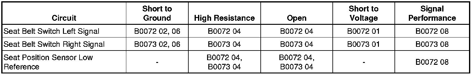 - Driver Seat Belt Sensor Circuit Short to Ground