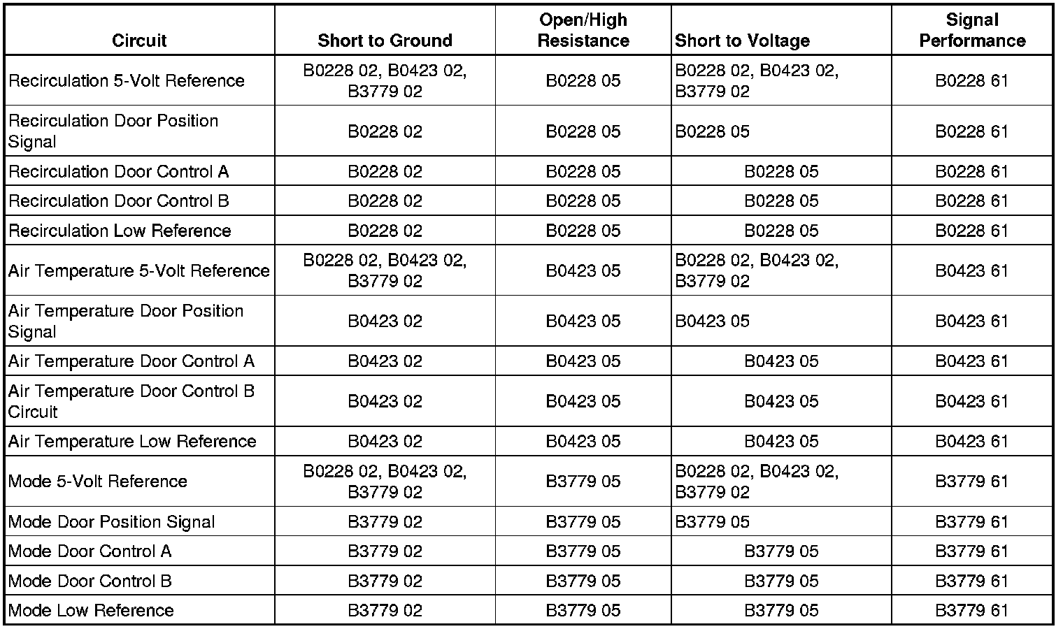 * DTC B0423 is for the air temperature actuator.