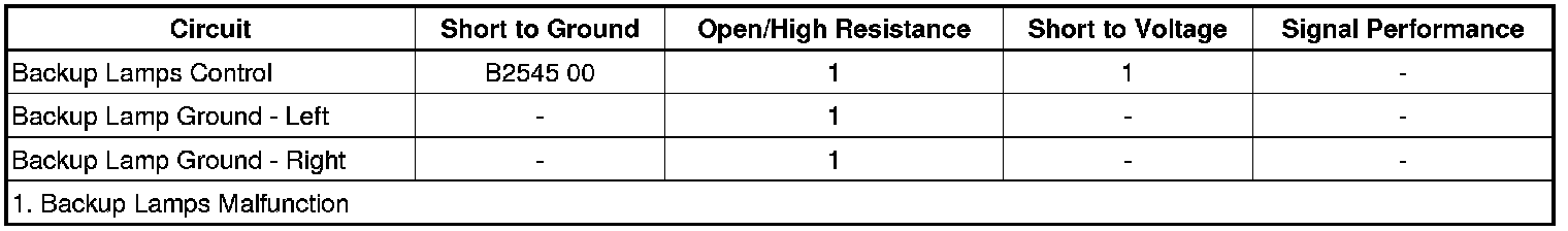 DTC B2545 00 will set when the BCM detects a short to ground in the backup lamps control circuit.
