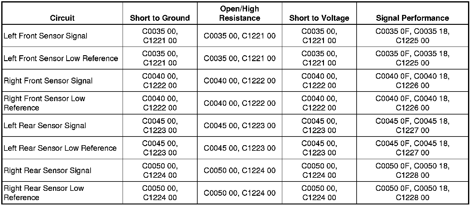 DTC C0035-C0050 or C1221-C1228