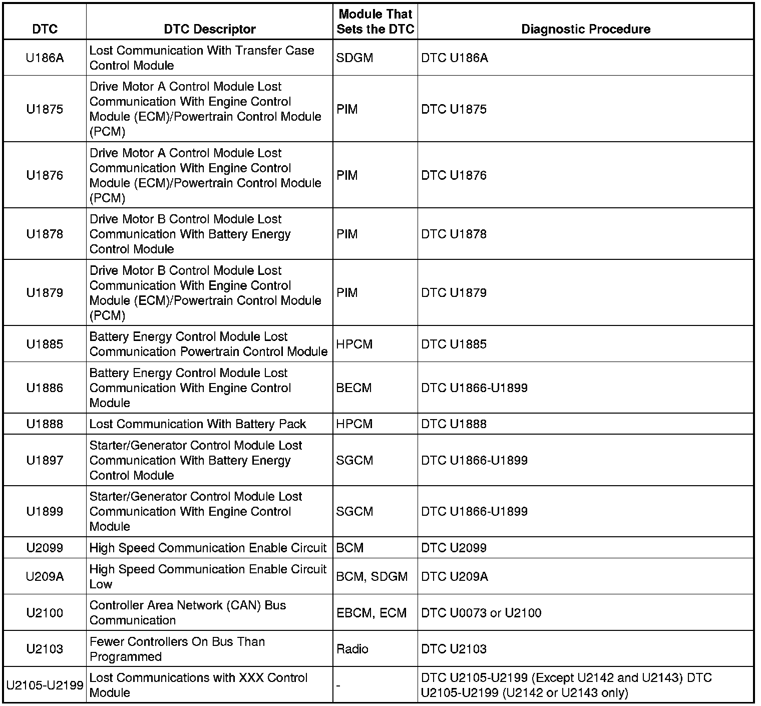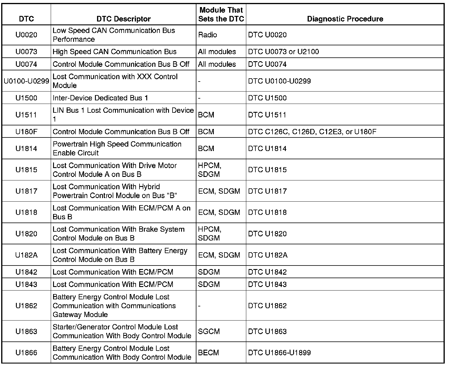 This master DTC list includes all applicable DTCs in alphanumeric order with descriptors.